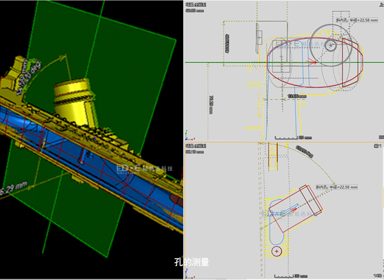 6.切面测量,2D的测量,支持在任意X,Y,Z方向上去切面转换为一个测量平面,可以直接在空间和平面上测量角度,长度,直径等